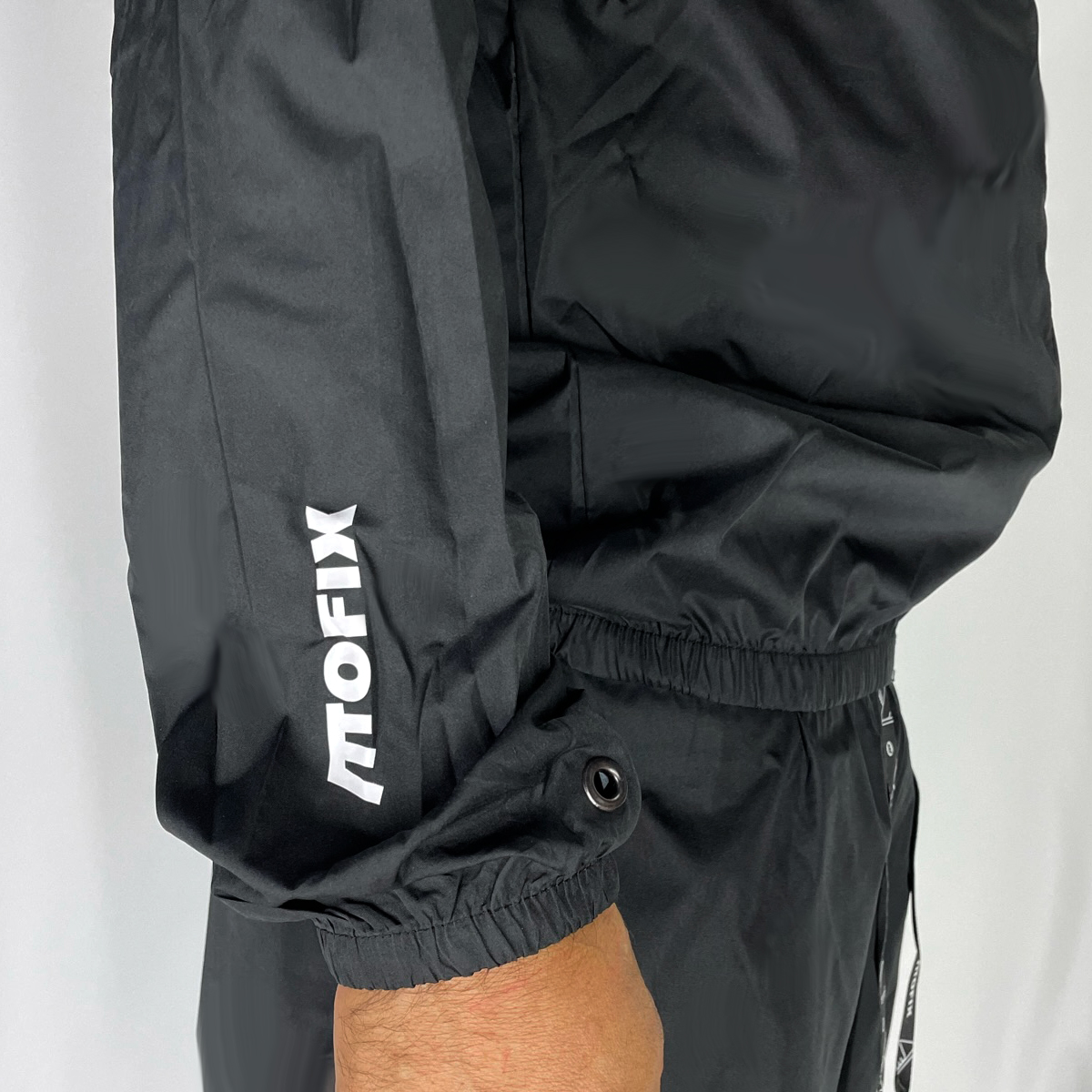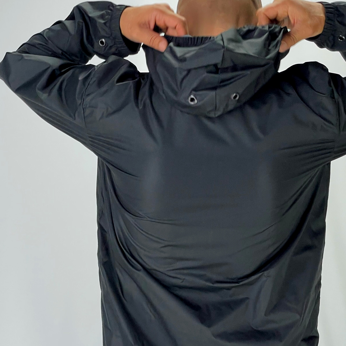 - Материал dewspo обладает отличными водоотталкивающими и ветрозащитными свойствами - специальные водоотводящие люверсы на рукавах, капюшоне и на штанах не дают воде скапливаться внутри и не мешают на сгибе - резинки на талии, рукавах и штанинах не дают лишней воде попасть внутрь - затяжки на талии - прорезиненная молния - капюшон на резинке защищает голову, можно носить под шлемом