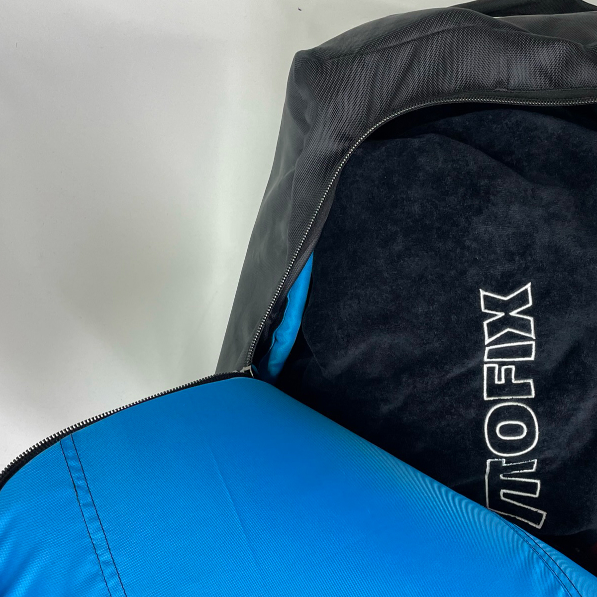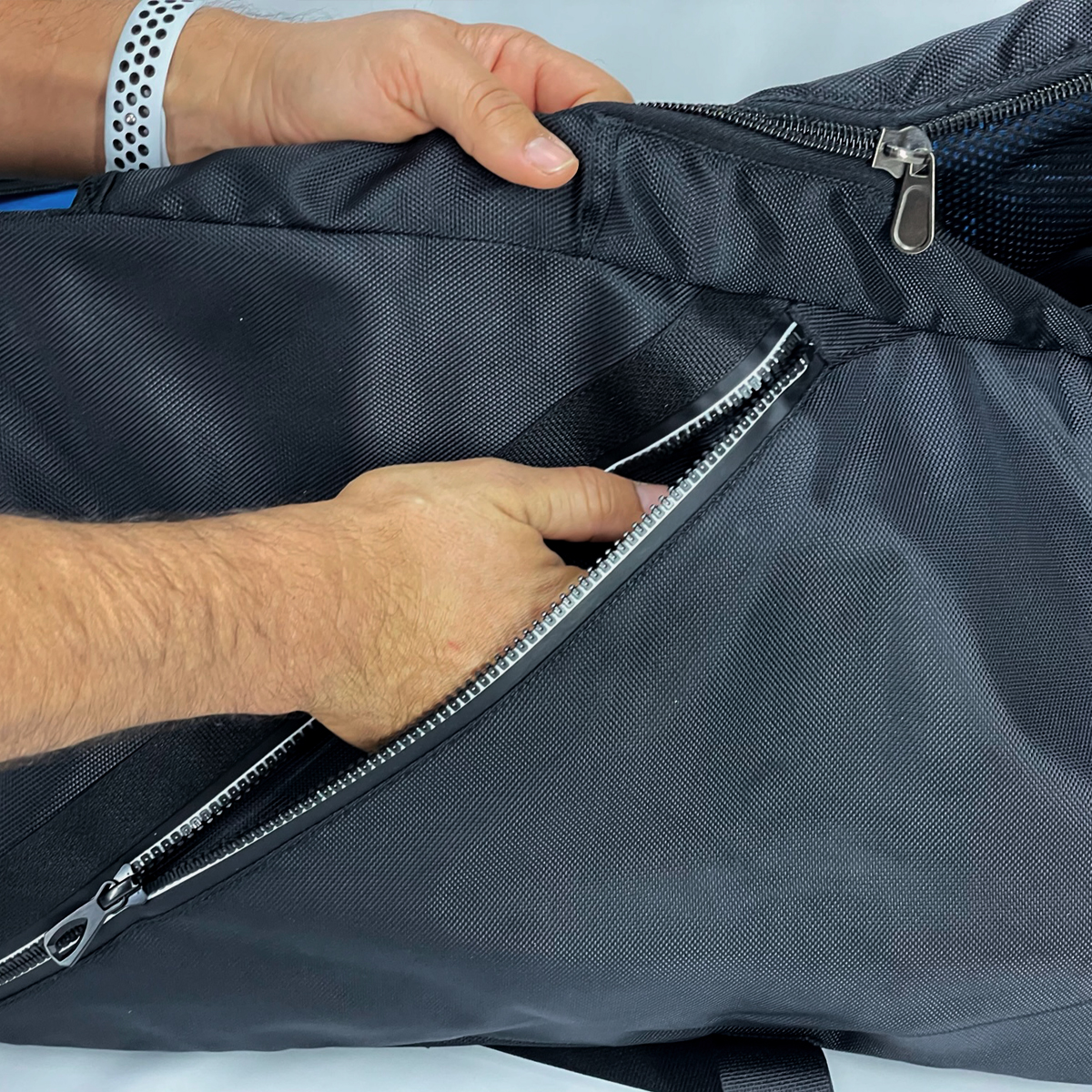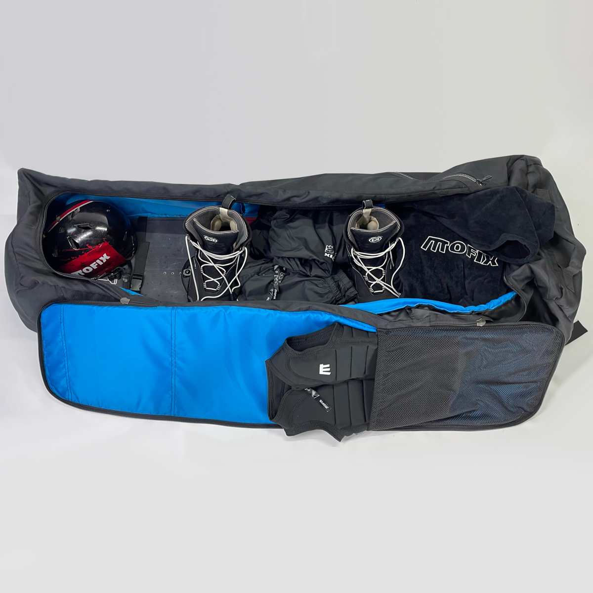 Плотный, износостойкий и водонепроницаемый материал снаружи и внутри, со специальным уплотнителем между ними, делают чехол удобным и практичным как для больших путешествий, так и для локальных перемещений между вейк-парками.