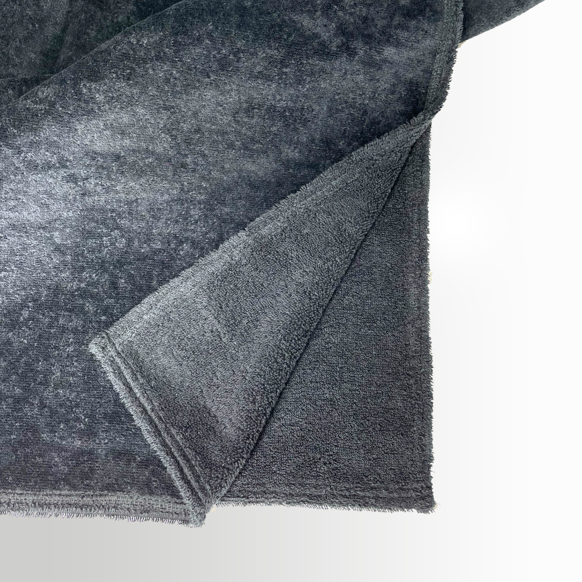 Удобно использовать как пляжное покрывало. Короткий ворс с одной стороны, впитывающий ворс с другой стороны.